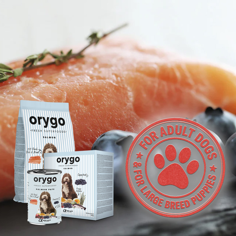 För hundar som älskar lax – här är fodret som får dem att jubla av glädje redan vid första tuggan! Med 85 % färskt kött och fisk, där laxen spelar huvudrollen, erbjuder ORYGO en smakupplevelse utöver det vanliga. Varje kula är fylld med nyttigheter och noggrant utvalda ingredienser av vårt veterinärteam för att ge optimal hälsa och välbefinnande. Tack vare vårt unika fermenteringssystem blir fodret extra skonsamt för magen och har gjort underverk för många hundar med känslig matsmältning. För att tillverka 1 kg ORYGO SALMON använder vi hela 3 kg färskt kött och fisk – det är ren kvalitet i varje portion.